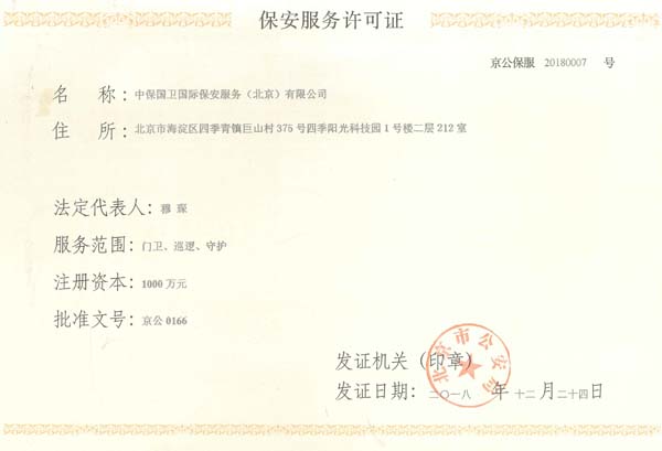 中保國(guó)衛(wèi)國(guó)際保安服務(wù)(北京)有限公司,屬中保國(guó)衛(wèi)集團(tuán)旗下子公司。能全方位的為大型客戶提供優(yōu)質(zhì)的安保、押運(yùn)服務(wù),是集人防和技防于一體的新型正規(guī)化綜合安保押運(yùn)服務(wù)企業(yè),提供人防、物防、技防、聯(lián)網(wǎng)報(bào)*、非武裝押運(yùn)等安防相關(guān)的一站式服務(wù)。 公司在國(guó)內(nèi)多省設(shè)立有分公司及分支機(jī)構(gòu),著重提升安全押運(yùn)、智能技術(shù)押運(yùn)及安全技術(shù)防范相關(guān)的服務(wù),業(yè)務(wù)范圍覆蓋全國(guó)一、二線城市、港澳地區(qū)以及海外地區(qū)。安保方面主要為政府機(jī)構(gòu)、金融機(jī)構(gòu)、企事業(yè)單位、醫(yī)療衛(wèi)生、高等院校、工業(yè)園區(qū)、大型商場(chǎng)、高檔住宅、智能商務(wù)樓、大型活動(dòng)提供門(mén)衛(wèi)、守護(hù)、巡邏、押運(yùn)(非武裝)、安全檢查、保安特勤、私人護(hù)衛(wèi)、消防中控、安全技術(shù)防范、遠(yuǎn)洋護(hù)航等全方位服務(wù),同時(shí)面向國(guó)際市場(chǎng),為中資企業(yè)在“一帶一路”沿線國(guó)家投資提供境外安保服務(wù)。 >> 更多內(nèi)容 |